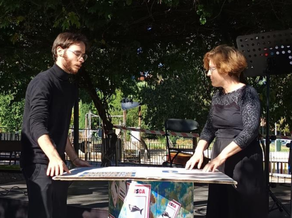 Se busca cachalote en Carabanchel se estrenó el día 26 de octubre del 2025 en el Jardín de las Asociaciones, dentro de los actos culturales de Plazas con Alma organizados por Alberto Morate. La obra es un spin-off de Mosaico de barr(i)o movedizo que debía adaptarse a un espacio público, dentro de un marco temporal y espacial concreto. Trabajamos desde dos lugares, lo teatral y lo poético, con ganas de investigar y compartir saberes y orígenes. Ensayamos, modificamos, nos adaptamos, inventamos algo distinto, aprendimos mucho. Ahora nos hacemos las preguntas que podían haber estado ahí en el principio. Lo que pasa es que primero fue el hacer y con el hacer descubrimos las preguntas, y las preguntas nos permitieron entender un poco lo que sucedió.